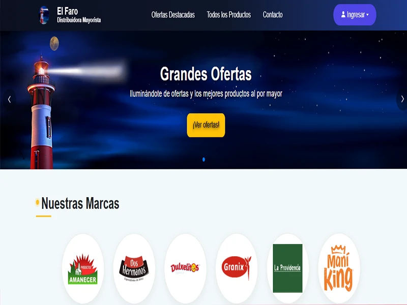 Proyecto 2 Distribuidora mayorista de refrigerados y embutidos Diseñé y desarrollé un sitio web profesional, con planes para integrar en el futuro un sistema completo de e-commerce con carrito de compras y registros de usuarios.. Ambas se pueden visitar en Distribuidora Don Cesar y Distribuidora El Faro Mayorista